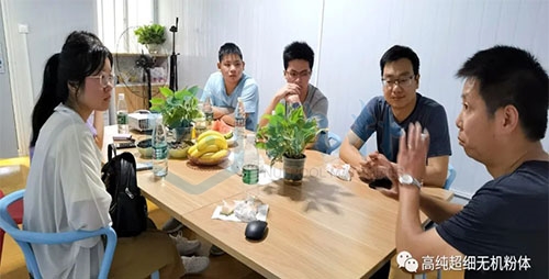 之后,曹總和徐總帶領實習生在生產(chǎn)現(xiàn)場進行參觀學習,并介紹了公司的實驗室。參觀結束后,雙方在會議室進行了座談交流。